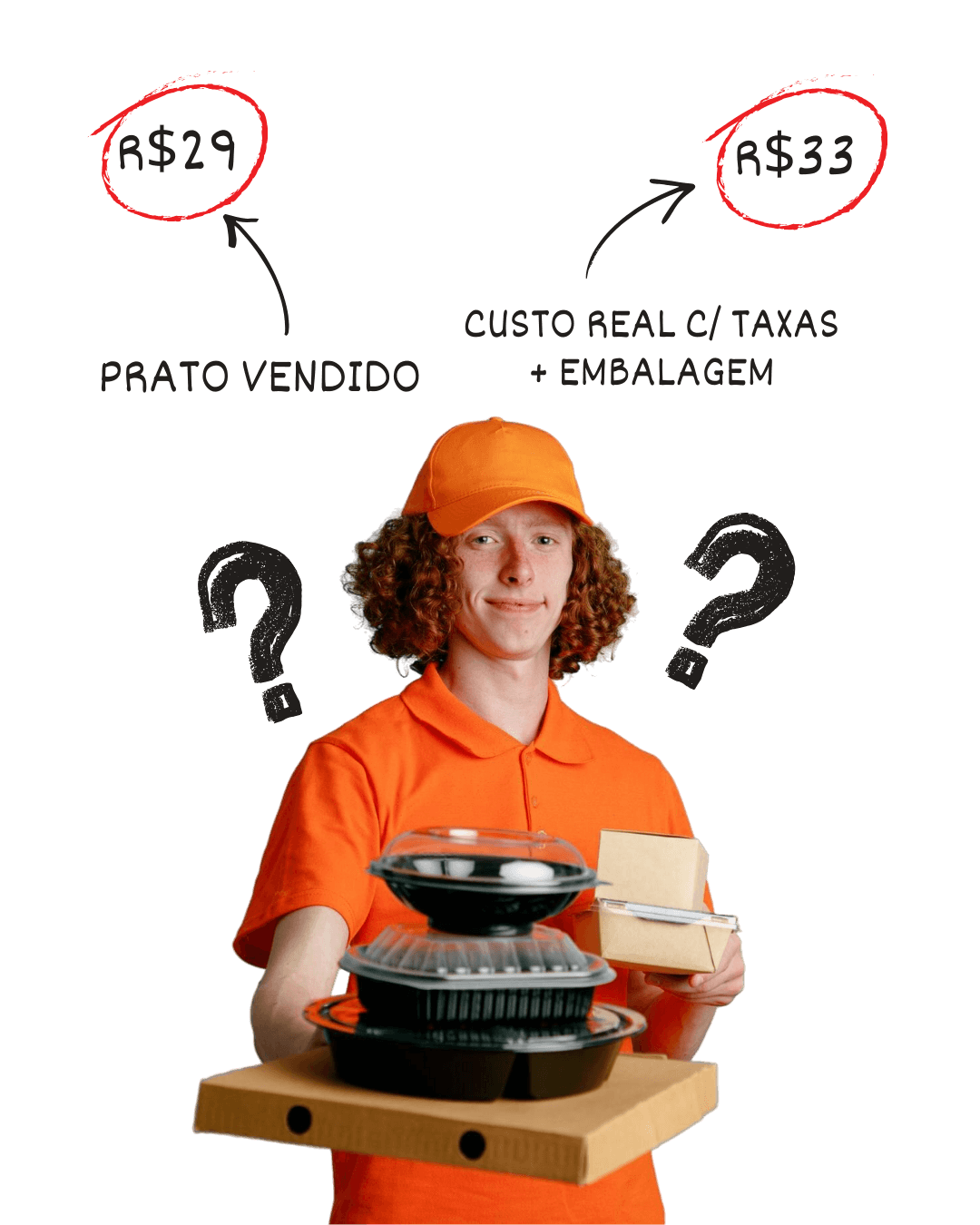 Ingredientes, taxa do app ou cartão, embalagem e entrega.